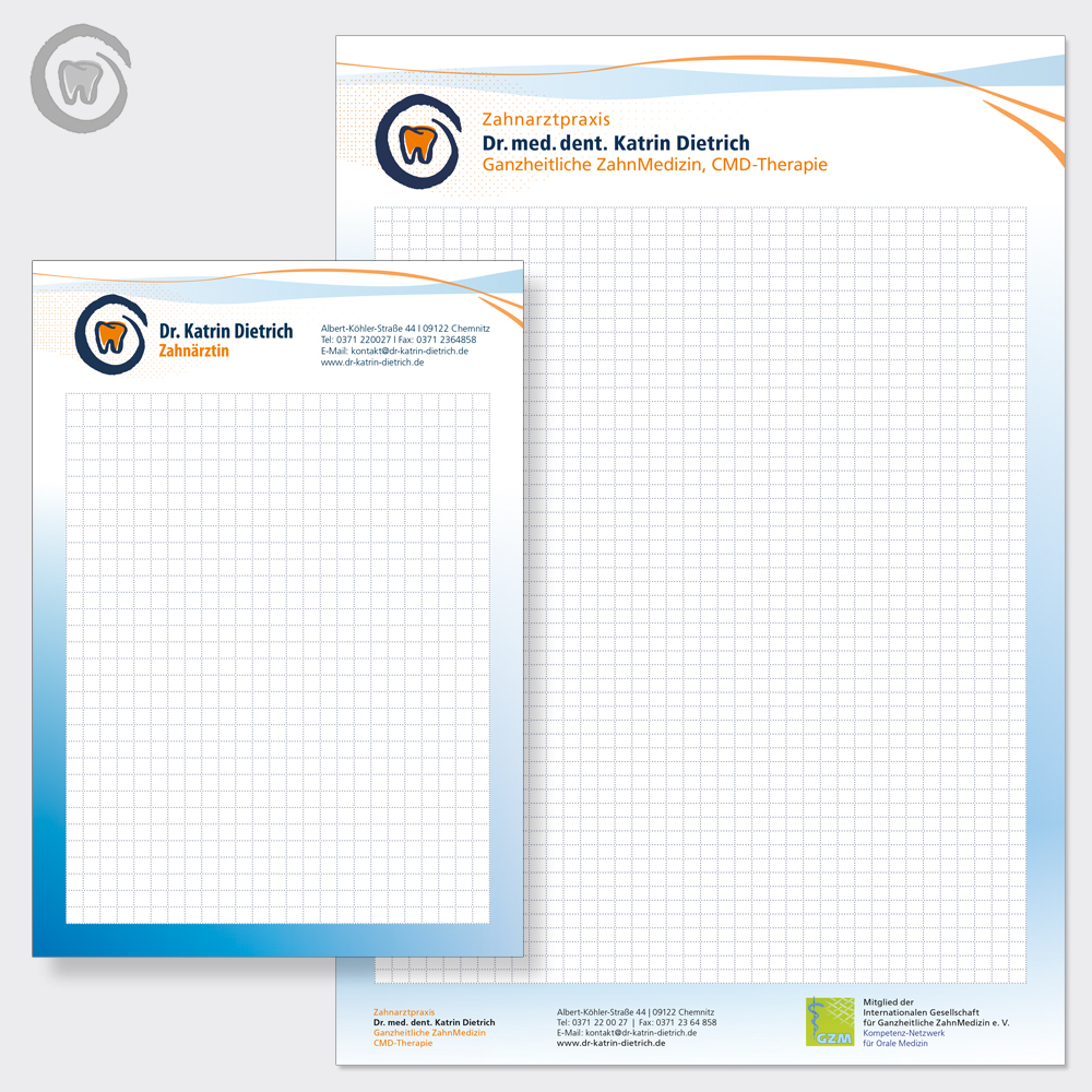 Im Jahr 2008 startete ein Markenrelaunch der Zahnarztpraxis. Es enstanden das neue Logo, die Geschäftsausstattung, diverse Drucksachen und die Internetseite neu. Seit 2008 einer meiner beständigen Kunden.